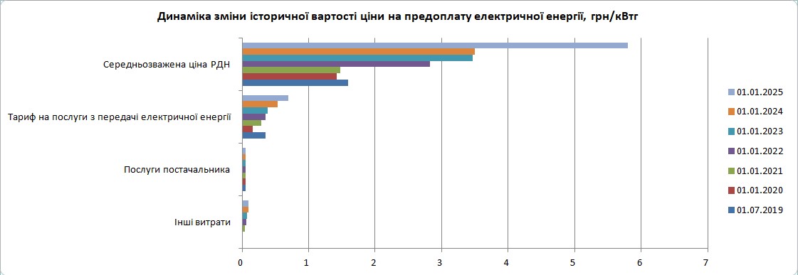 Динаміка змін історичної вартості складових ціни на електричну енергію